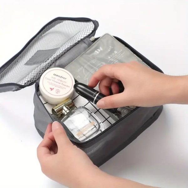 Het duurzame, waterdichte materiaal zorgt ervoor dat uw toiletartikelen en cosmetica veilig en droog blijven. De kleine ritszakjes zijn perfect voor make-up, lotions of vloeibare items die op hun plaats moeten blijven zonder te lekken in uw tas.