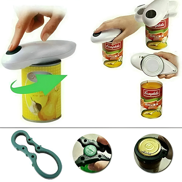 Met één druk op de knop open je blikken van verschillende formaten snel en veilig. Perfect voor iedereen, inclusief mensen met artritis of handpijn.