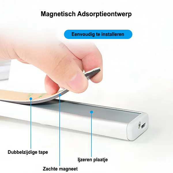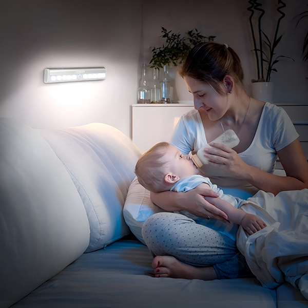 Plak het bij de badkamerdeur of binnen. Het wordt geactiveerd wanneer je dichterbij komt en biedt net voldoende licht voor nachtelijke bezoeken zonder de harde helderheid van plafondlampen.