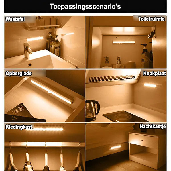 Zorg ervoor dat je anderen niet wakker maakt terwijl je een middernachtsnack of water haalt. Plaats hem onder keukenkastjes of op werkbladen, zodat hij oplicht zonder iemand te storen.
