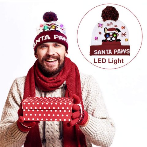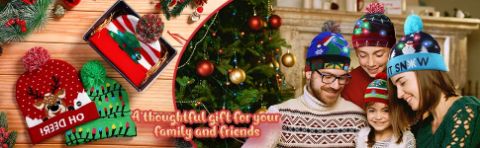 XBEANIE met een designpatroon van een kersthert en sneeuwpoppen en met ledlampjes, die voldoen aan de vakantiebehoeften en mooie mode