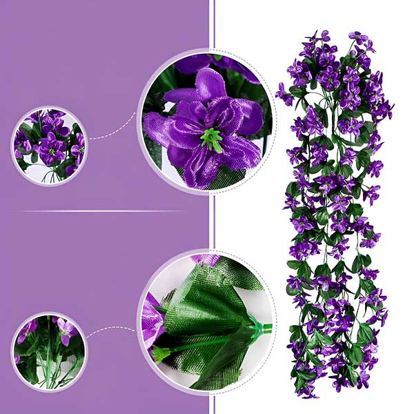 Breng een vleugje elegantie in elke ruimte met onze levensechte kunsthangbloemen. Deze hangende bloemen zijn gemaakt van prachtige zijdeachtige stof en hoogwaardig kunststof en voegen een natuurlijke charme toe aan je omgeving.