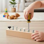 Kinderen leren een moersleutel en schroevendraaier gebruiken om zelfvertrouwen op te bouwen voor echte taken.