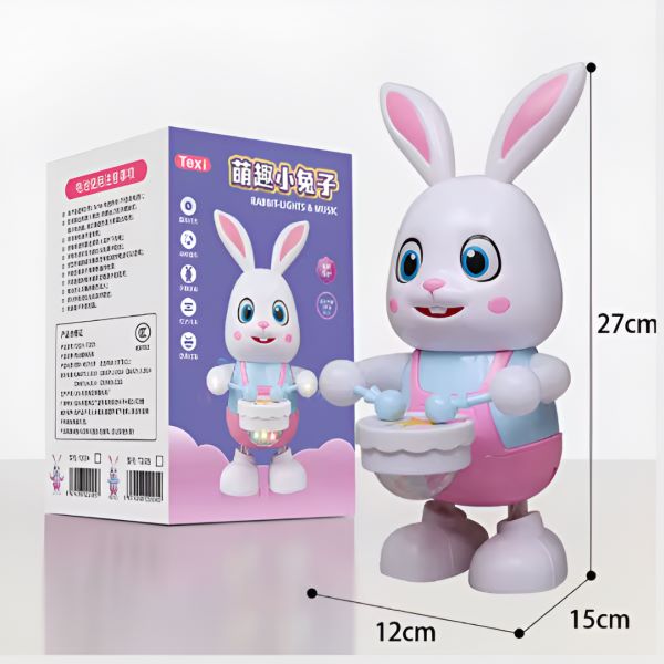 Activeer het konijntje en kijk hoe het vooruit loopt, met zijn staart kwispelt en schattige piepgeluidjes maakt!