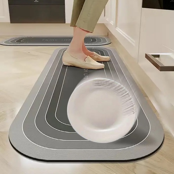 De antislipmat heeft een stevige grip op de vloer, voorkomt uitglijden en biedt een veilige en stabiele basis tijdens het koken.