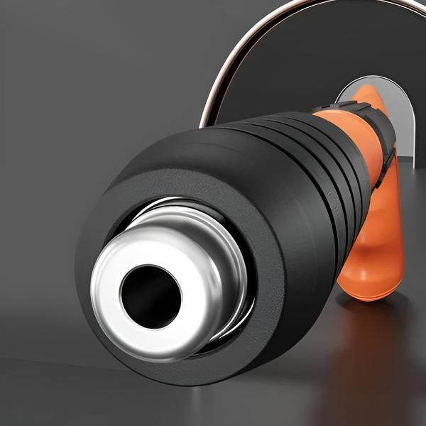 Het is een puur fysiek apparaat, zonder elektriciteit, dat een sterke veer gebruikt om te duwen en een beschermende functie heeft.