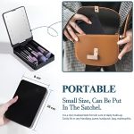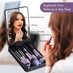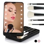 De kwastenset en LED-spiegel passen perfect in je tas, zodat je je make-up overal gemakkelijk kunt bijwerken.