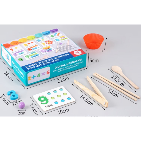 Kleurrijke kralen, structuren en hulpmiddelen prikkelen zicht en tastzin om het vroege wiskundig inzicht te verdiepen.