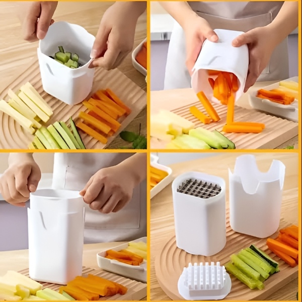 Het CHOPZY keukengereedschap is niet alleen voor frietjes; het is een veelzijdige groentesnijder die verschillende ingrediënten zoals wortels, komkommers en uien aankan, waardoor het bereiden van maaltijden eenvoudiger wordt.
