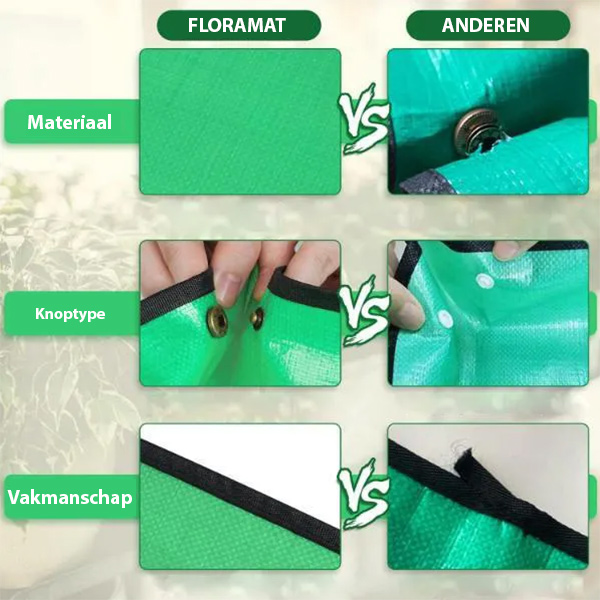 FLORAMAT is gemaakt van verdikte waterdichte PE-stof en is ontworpen om veelvuldig vouwen en zwaar gebruik zonder schade te weerstaan. De dubbelzijdige waterdichte eigenschappen en sneldrogende eigenschappen zorgen ervoor dat het een betrouwbare metgezel blijft voor al je tuinprojecten.