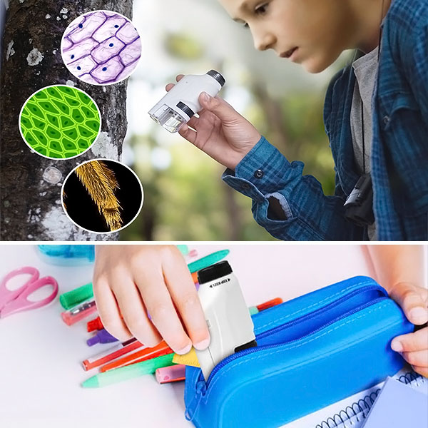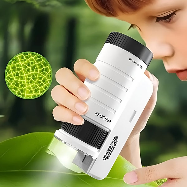 Zakmicroscoop voor kinderen – 60-120x, LED, Telefoonclip | MINISCOPE