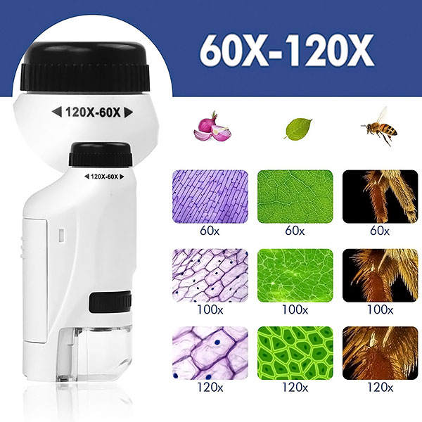 60x tot 120x vergroting – maakt van een blad, insect of draadje stof een ontdekking