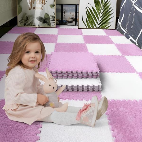 Stap op luxe zachtheid met FLUFFTILE, de pluche puzzelmat die elke kamer direct gezelliger en stijlvoller maakt!