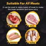De MEATZI Snelle Pin Press Vleesvermalser maakt het vermalsen van vlees snel en eenvoudig, zodat je stukken vlees elke keer perfect mals zijn, of het nu biefstuk, kip of varkensvlees is.