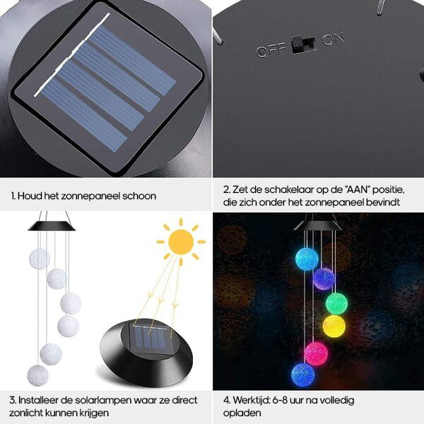 1x AURAWIND Hangende Solar LED Tuinlamp met 6 lampen