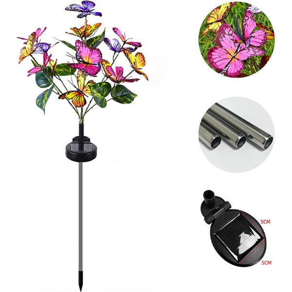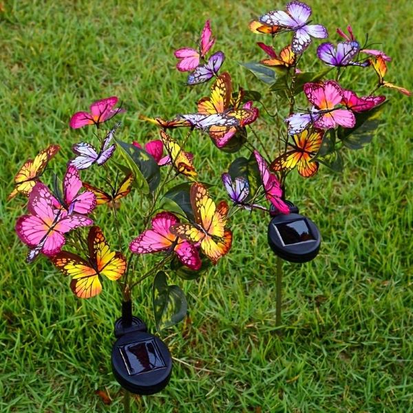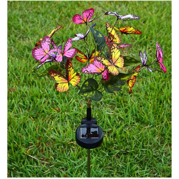 Deze tuinverlichting op zonne-energie, met levensechte stoffen vlinders en veelkleurige LED-lichtjes, zal zeker verblinden en verrukken. Voeg een speels tintje toe aan je tuindecor met hun unieke ontwerp. De LED-lampen zijn energiezuinig en stralen een warme, uitnodigende gloed uit.