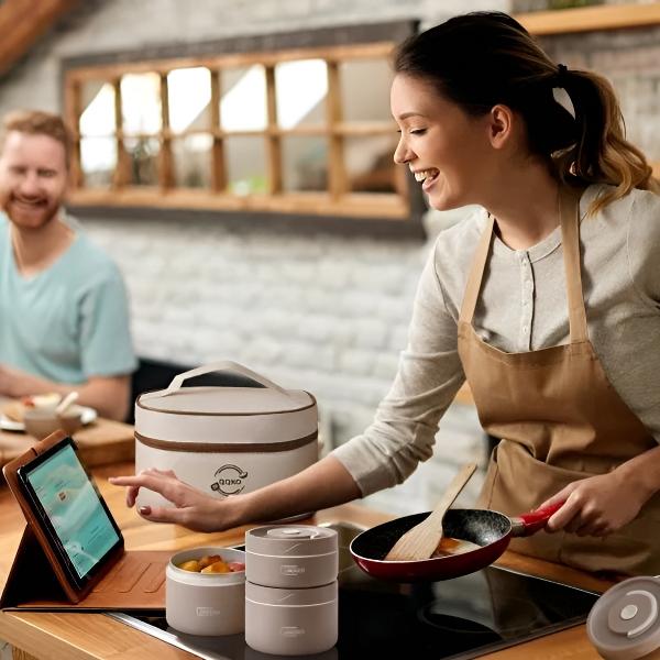 Geniet overal waar je gaat van warme zelfgemaakte maaltijden met deze meerlaagse voedselcontainerset.