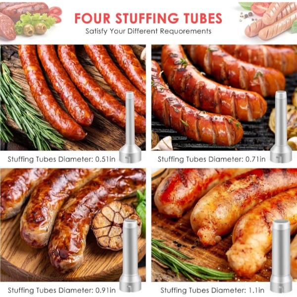 Uitgerust met 4 PP-buizen en 2 borstels is deze vleesworstvuller perfect voor vakantiefeesten en familiereünies.